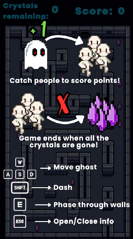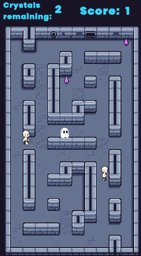 You are the ghost in a twisted dungeon maze . Hunt down the people before they destroy your crystals!